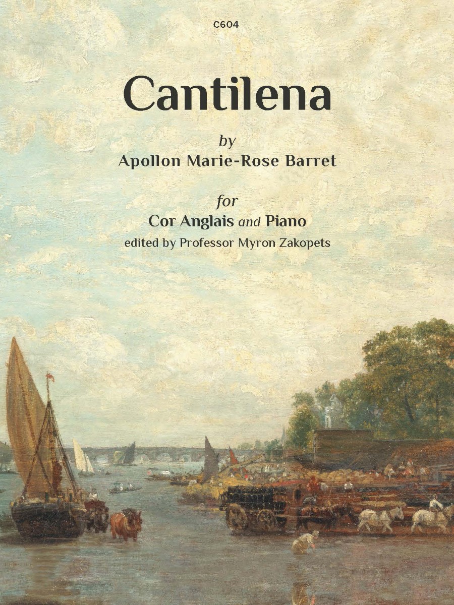 Cantilena for Cor Anglais and Piano is a work with lyrical melodies and a lively middle section by Apollon Marie-Rose Barret: 1804-1879. Set on the …Trinity College syllabus from 2022 Oboe Grade 7 Group A. Barret was born in Northern France in 1804 and died in Paris in 1879, after spending most of his working years in London. He was Solo Oboe at the Italian Opera (Covent Garden) and Professor at the Royal Academy of Music. He was involved in the development of the modern oboe in France and wrote A Complete Method for the Oboe, in which the melody of Cantilena appears as a short piece for oboe with bassoon accompaniment. Previously published by Phylloscopus Publications Former catalogue number: PP561