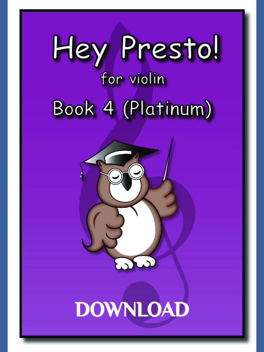 Book 4 in the Hey Presto! tutor series for violin. This book takes the violinist to new levels of expressiveness and technical facility. Position pages explore …different positions and ways of shifting between them, and the pieces cover a wide range of genres, from traditional fiddle music, to jazz and gypsy violin as well as classical music.