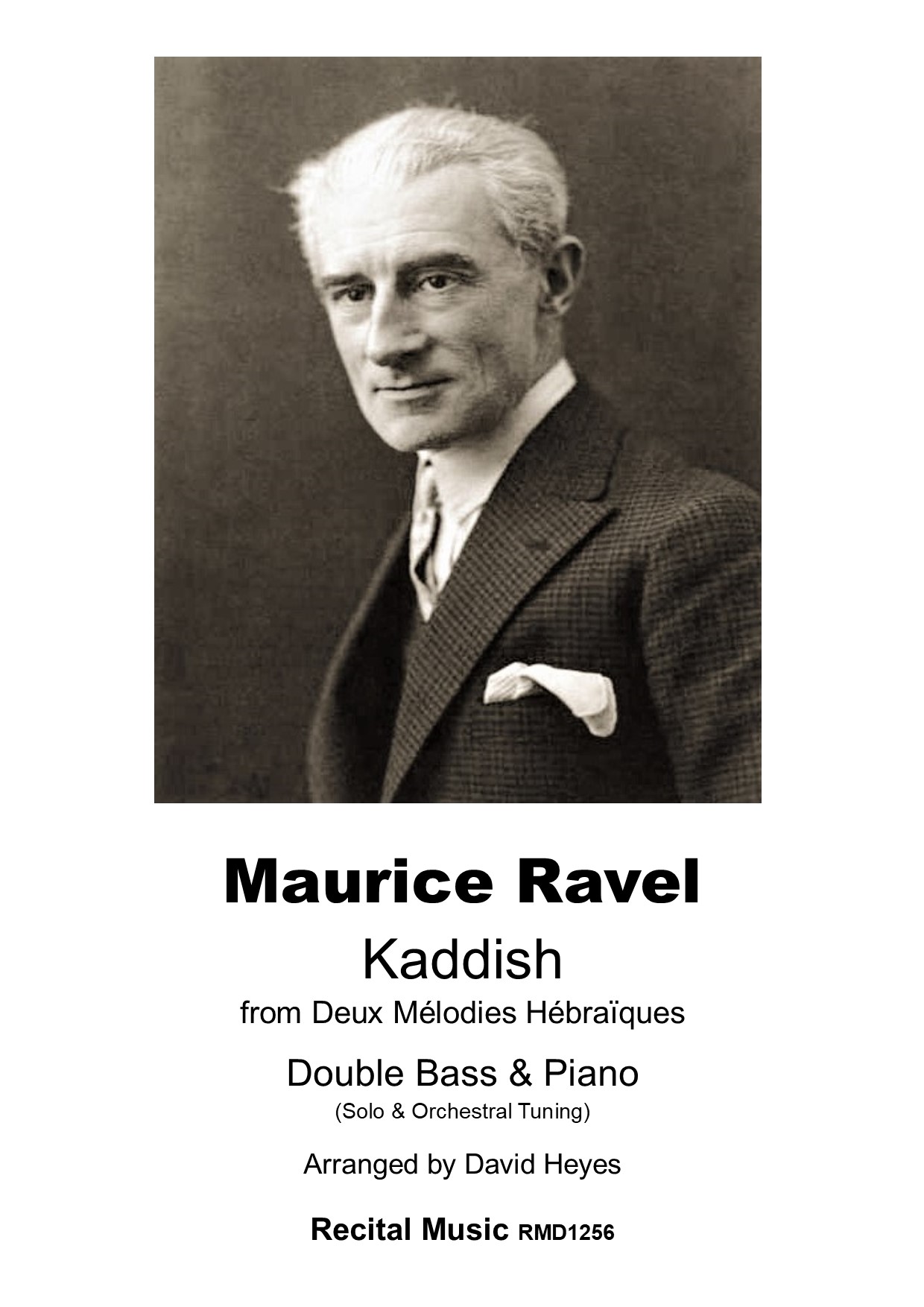 Deux Mélodies Hébraïques by Maurice Ravel (1875-1937) was written in 1914 at Saint-Jean-de-Luz. The first song Kaddish, here arranged for double bass and …piano by David Heyes, uses an Aramaic text from the Jewish prayer book. Both songs were first performed in June 1914 by Alvina Alvi, a soprano with the St Petersburg Opera who commissioned them, with the composer at the piano. Ravel orchestrated the songs in 1919-1920. The piano accompaniment is primarily chordal, contrasting a more rhapsodic and melismatic solo line, utilizing the lyrical and sonorous register of the double bass. Kaddish has been transcribed for many instrumental combinations and demonstrates the vibrant colours and timbres employed in the musical vocabulary of Maurice Ravel. This edition includes piano accompaniments for both solo and orchestral tunings.