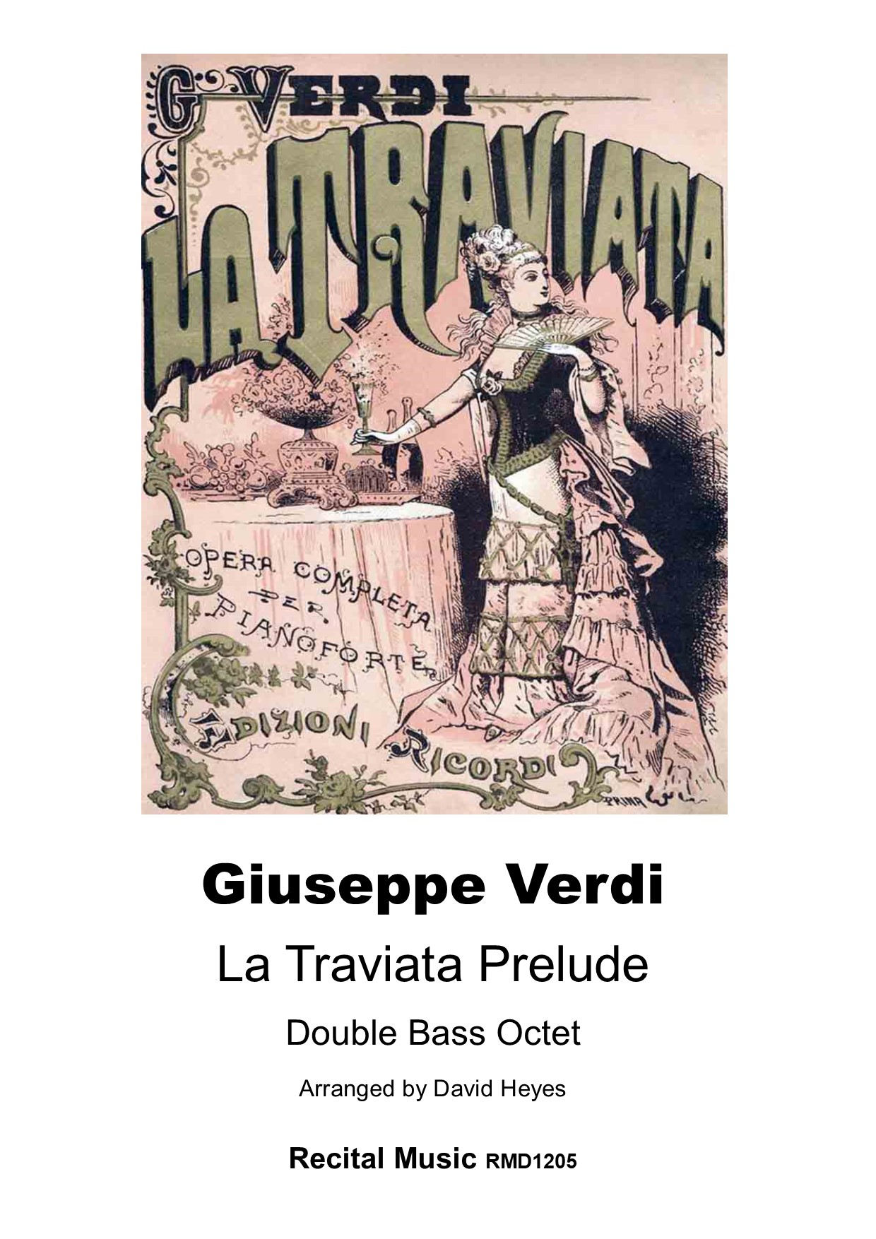 Prelude to Act One of La Traviata by Giuseppe Verdi was transcribed for Double Bass, Octet in 2011 by David Heyes and the arrangement was performed …in California, USA soon afterwards. In place of an overture, the Act One Prelude sets the scene with an evocative and ethereal introduction before leading into a beautifully sumptuous melody, set against a colourful and engaging accompaniment and a joyfully playful counter-melody. It ends quietly and simply. The music transcribes well for Double Bass, Octet and there are musical, technical and ensemble challenges for each performer. Giuseppe Verdi (1813-1901) was the leading Italian composer of the second half of the 19th-century and his many operas are still at the heart of the international, Repertoire into the 21st-century. La Traviata is based on ‘La Dame aux camélias’ (The Lady of the Camellias) by Alexandre Dumas (1802-1870) and its premiere at the Teatro La Fenice in Venice on 6 March 1853 was a failure. Verdi asked after the premiere “La Traviata, last night, a fiasco. Is it my fault, or the singers? Time will show.” Indeed, time has shown what a masterpiece this is and it is one of Verdi’s most beloved operas to this day.