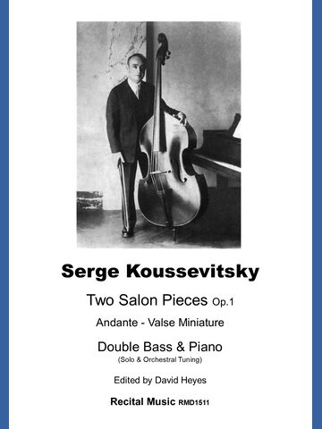 Koussevitsky’s Two Salon Pieces Op.1 remain at the heart of the double bass repertoire today and Recital Music’s new digital publication returns to …the original Russian printed editions to create new and exciting versions of these much loved pieces. Each piece is an exquisite and miniature tone poem, typical of salon music at the end of the 19th-century, demonstrating the lyrical and virtuosic potential of the double bass throughout its solo register. Andante Op.1, No.1 is the least well known of the four pieces but is a charming and elegant piece, in ternary form, which harks back to a different age. The themes are stylish and tasteful, played entirely in the solo register of the double bass, with an understated and sympathetic piano accompaniment which adds to the success of the piece. Valse Miniature Op.1, No.2 is a stylish and graceful waltz which offers both musical and technical challenges in equal measure. Played primarily in the solo register, this is an entertaining piece which is both player and audience friendly, with an accompaniment which is independent and also supportive. The agitated and dramatic middle section beautifully contrasts the decorous and sophisticated waltz themes, and Valse Miniature is a perfect example of salon music at its very best. Many bowings and details are inconsistent in the original editions and a number of editorial decisions have been taken to create new versions which hopefully reflect the composer’s original intentions. The edition includes piano accompaniments for both solo and orchestral tunings.