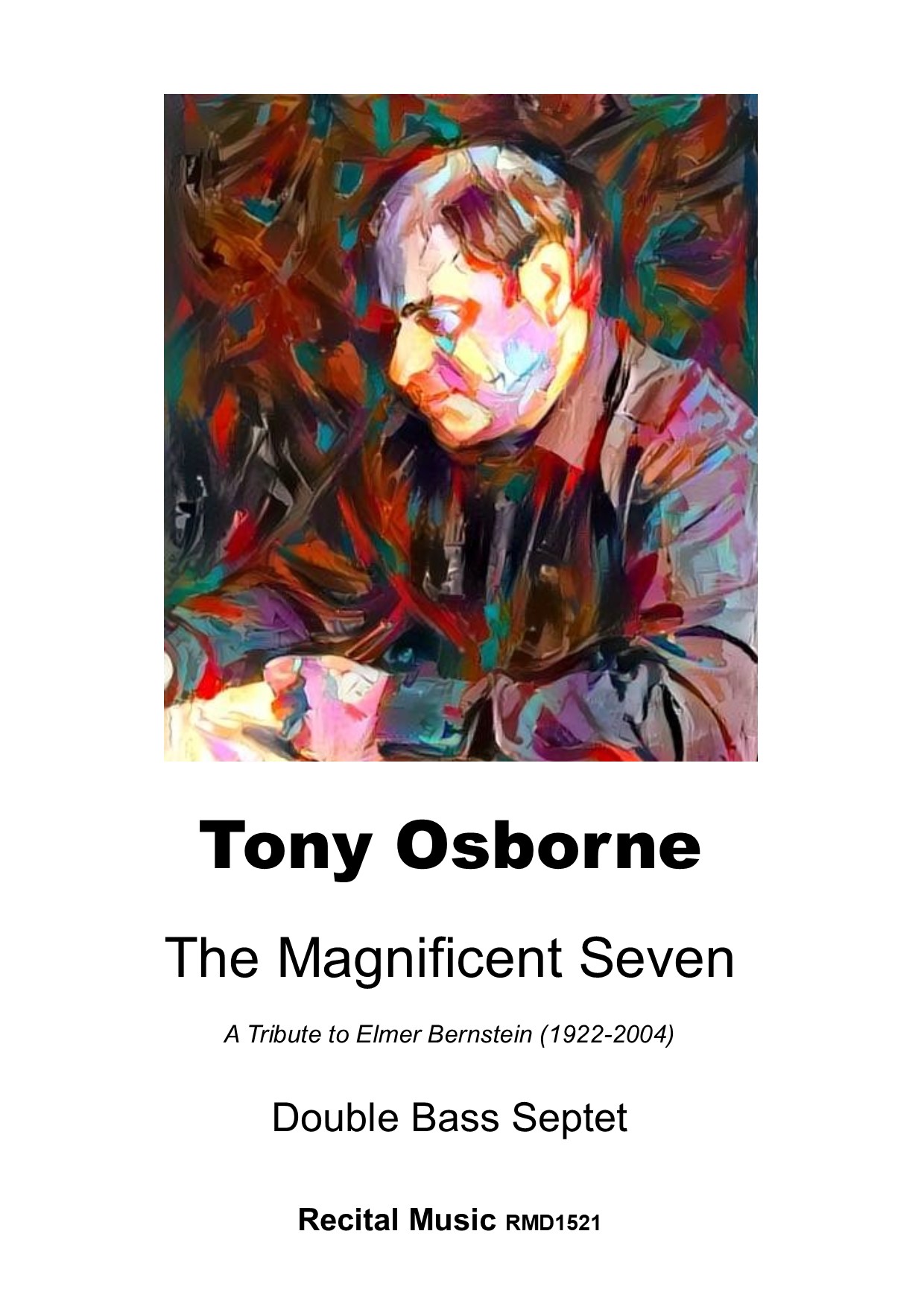 The Magnificent Seven is a fun septet, full of rhythmic invention and vigour. Immediately accessible, this is ‘pure Tony Osborne’ with much to enjoy for …performers and audiences alike. Vibrant and engaging, with a drive and momentum which propels the piece to a fast and rousing conclusion Tony Osborne writes: “Elmer Bernstein (1922-2004) was one of the great Hollywood composers. In his long and highly successful career he composed some of the most memorable themes and enhanced the atmosphere of many films. He also composed for the concert platform and stage. Named after one of his most important film score, The Magnificent Seven was commissioned by David Heyes – two days before its premiere performance – and performed at Bass-Fest 2004 by seven players from almost as many nations. Without trying to copy or parody Bernstein’s unique style, this piece seeks, in a direct and unpretentious way, to recreate the exciting world of writing a film score: to capture the spirit and story; keep the energy flowing; make it playable – but interesting – with minimum rehearsal time; complete to a short deadline – no problem! Just let the picture flow by in your mind’s eye – TAKE 1 – CAMERA – ACTION!” The Magnificent Seven was premiered on Monday 23 August 2004 at Bass-Fest 2014 (Sherborne School, Dorset, UK) by David Heyes, Mette Hanskov, Peter Leerdam, Arjen Leendertz, Alexandra Scott, Andreas Bennetzen and Teppo Hauta- aho.